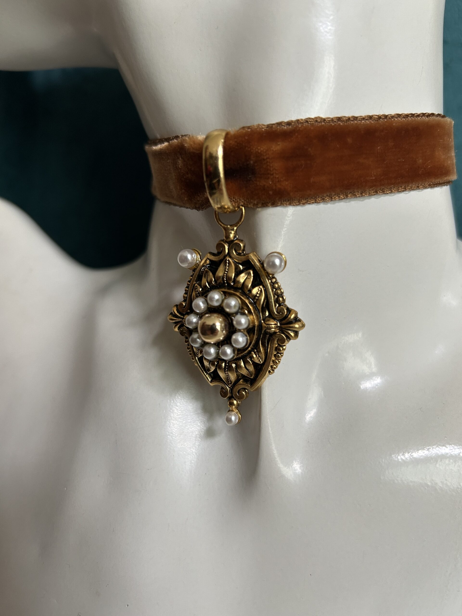Choker in velluto con chiusura in velcro, con ciondolo originale vintage in quanto fondo di magazzino grezzo galvanizzato oggi, quindi nuovo.