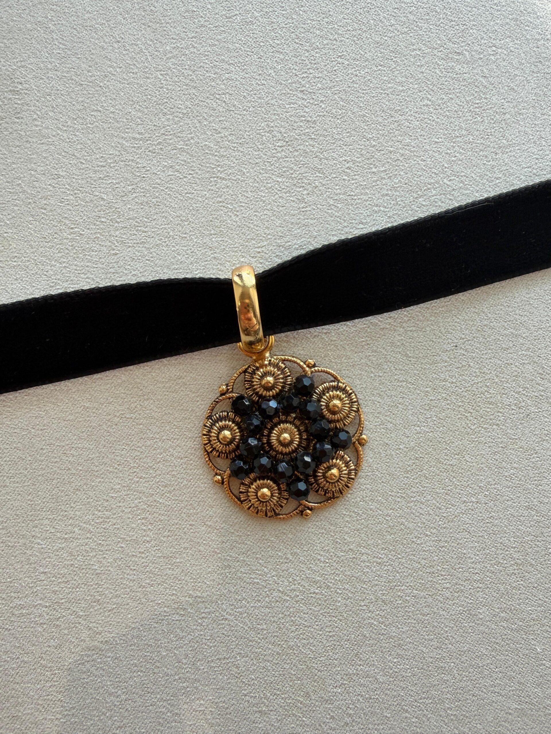 Choker con ciondolo con perline nere