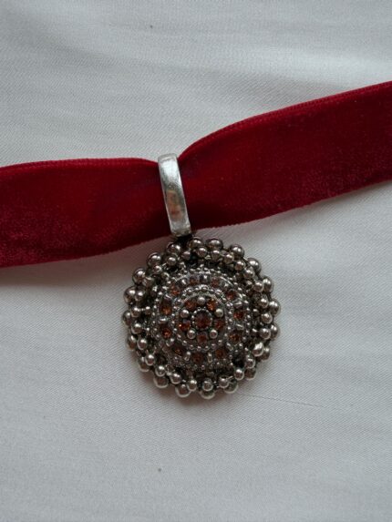 Choker in velluto con chiusura in velcro, con ciondolo originale vintage in quanto fondo di magazzino grezzo galvanizzato oggi, quindi nuovo, con perla pendente.