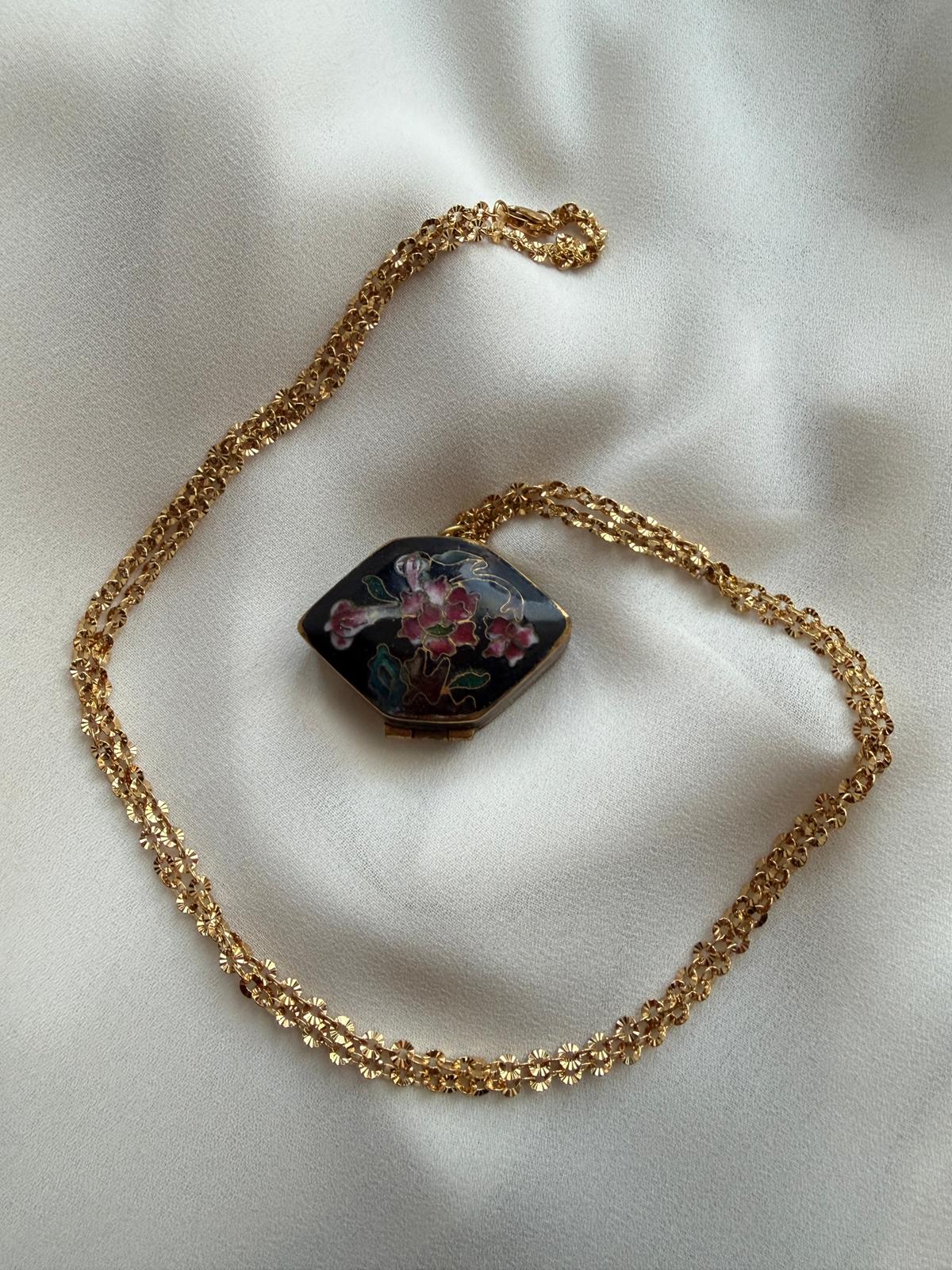 Collana con ciondolo scatolina cloisonnè ed. vintage 1920 – esagono nero