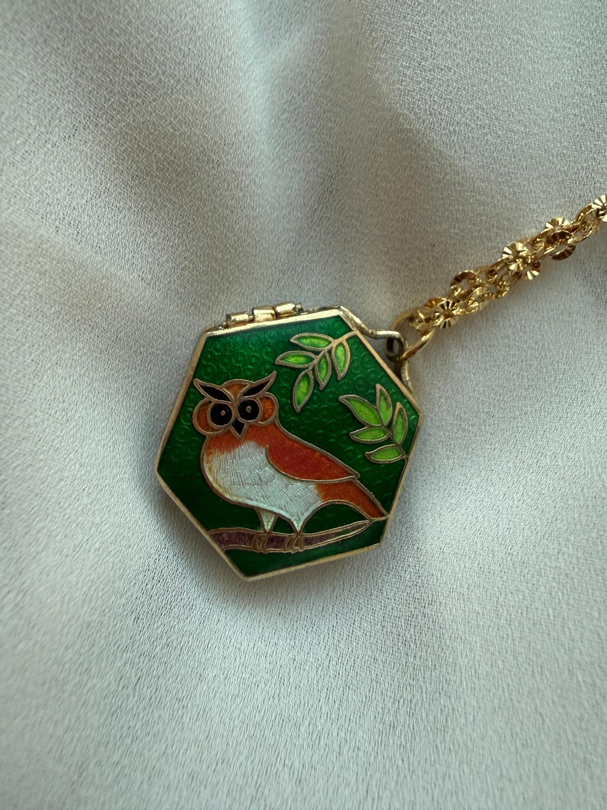 Collana con ciondolo scatolina cloisonnè ed. vintage 1970 – gufo