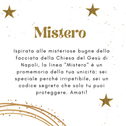 Questo articolo è stato realizzato a mano da artigiani napoletani. Per una migliore conservazione, si consiglia di evitare il contatto con acqua, sapone, profumi e creme. Ogni eventuale imperfezione non è da considerarsi un difetto ma una caratteristica dell’unicità del prodotto.