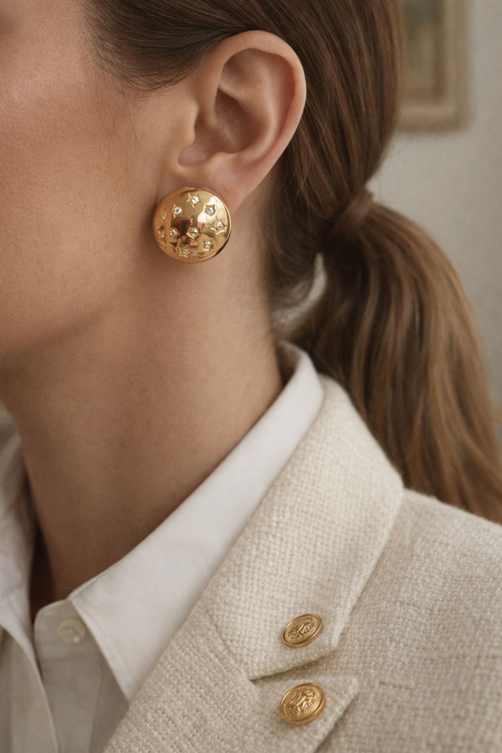 Il design richiama l’eleganza sofisticata degli anni ’80, rivisitata in chiave chic. Sono perfetti per illuminare il volto sia con un look da giorno ricercato che per completare un outfit elegante da sera.